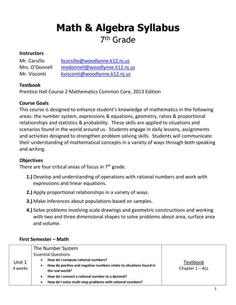 Read 7th grade math 2013 syllabus Kindle Editon ManyBooks